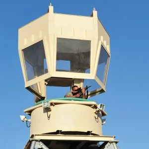 天井部分の迅速な開口により、すばやい反応が可能な多目的の監視および狙撃塔。